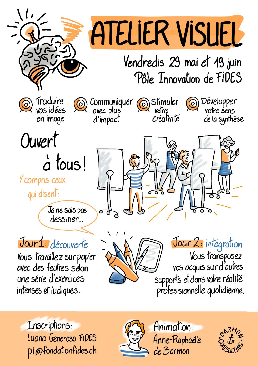 - Apprendre les techniques de visualisation, modélisation et facilitation graphique.